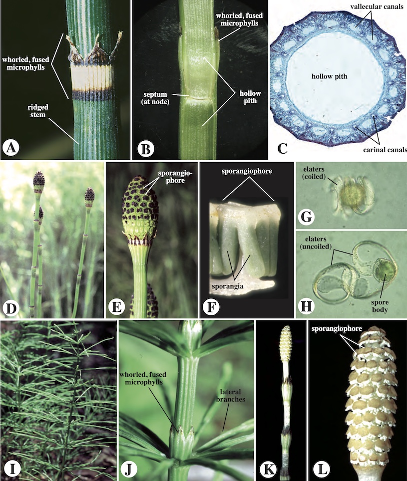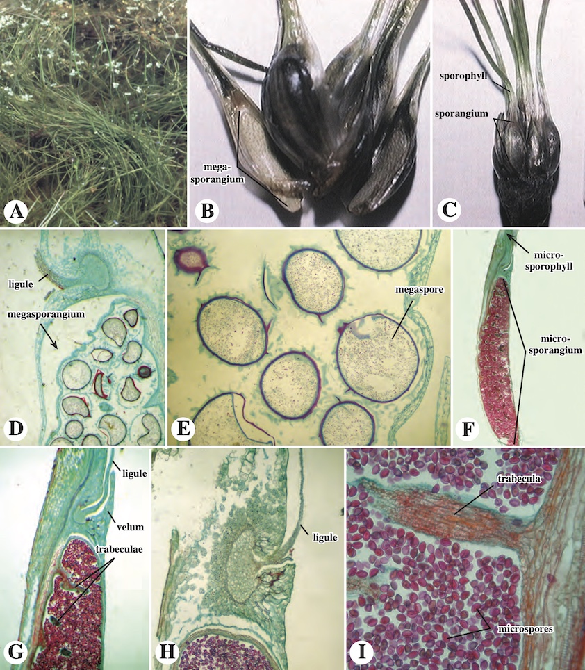 Identifique y describa la orientación de los ejes, la disposición y forma de las microfilas, posición y forma de los estróbilos.