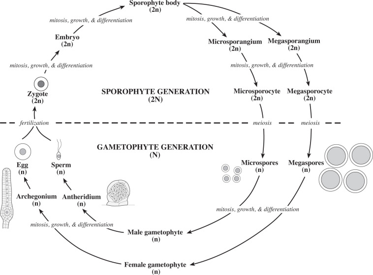 Identifique y describa las características del gametofito y el esporofito.