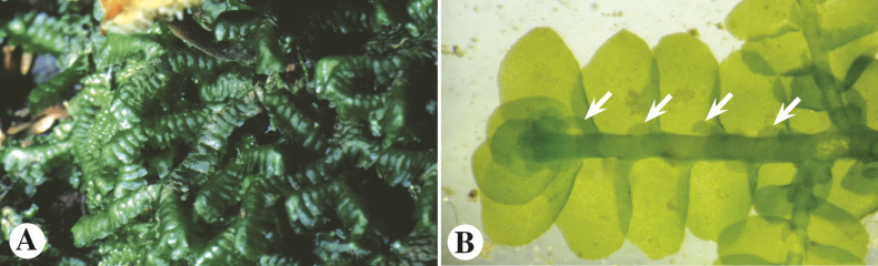 Cortes transversales con Safranina y Azul Alcián del gametofio y esporofito de Marchantiophyta.