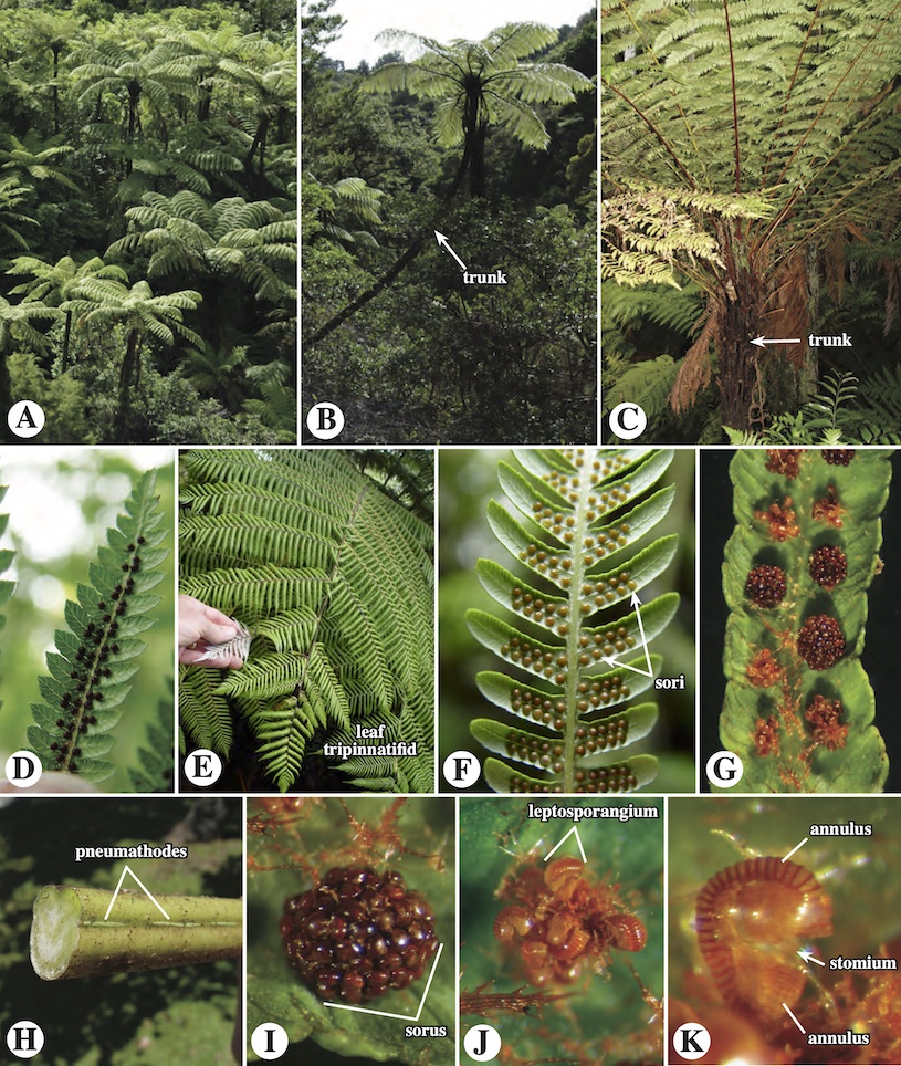 Identifique y describa la orientación de los ejes, forma y complejidad de las frondes, vernación, presencia de pelos y escamas, etc. Además identifique y describa presencia y formas de los soros e indusio.