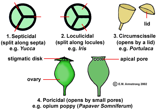 fruto seco dehiscente compuesto de dos o más carpelos fusionados, se abre por valvas o poros. Beentje (2016).