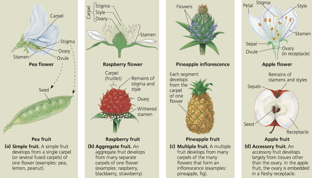 Fig 8: Tipos de fruto según su origen. Tomado de Urry et al. (2020).