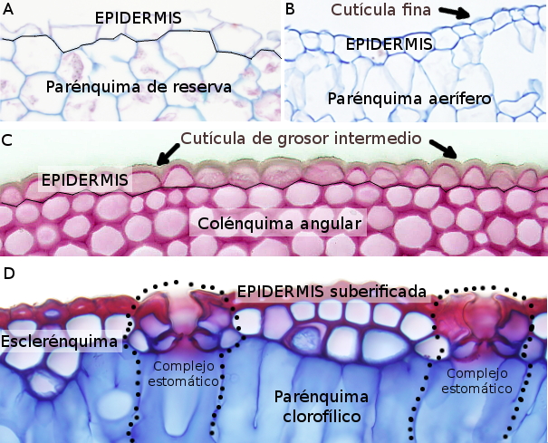 Epidermis con diferentes tipos de cutícula Megías Pacheco et al. (2017)