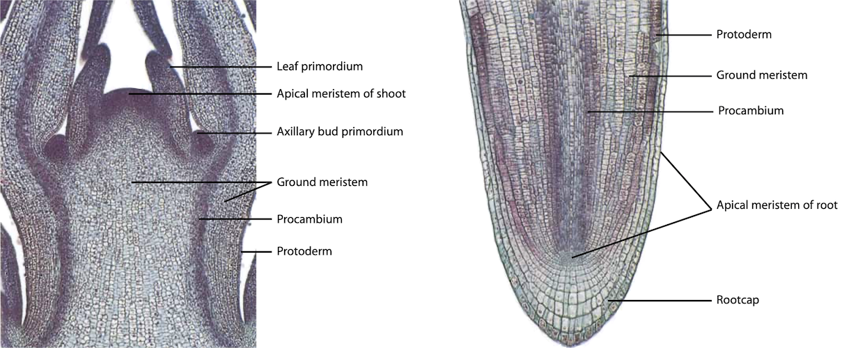 Meristemo apical caulinar y radicular. Evert & Eichhorn (2013)