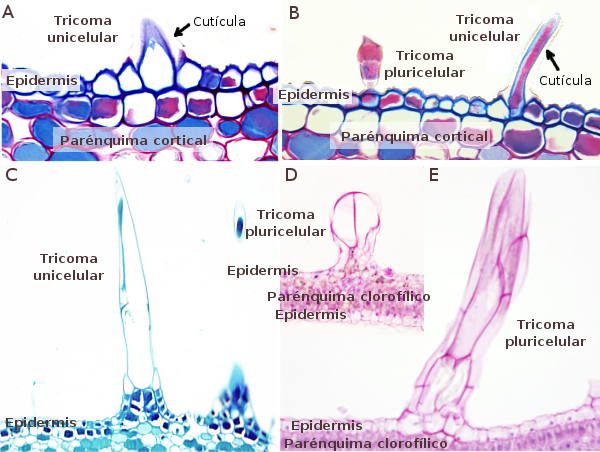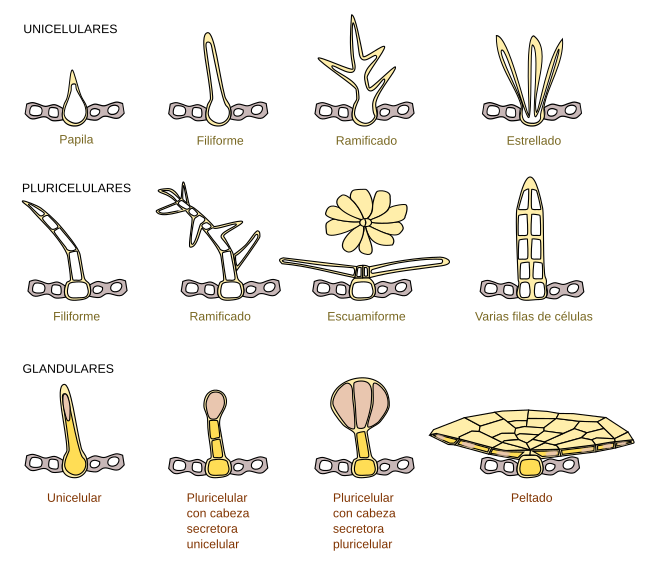 Tipos de tricomas. Megías Pacheco et al. (2017)