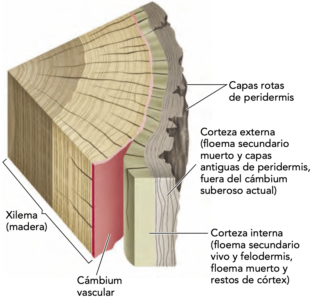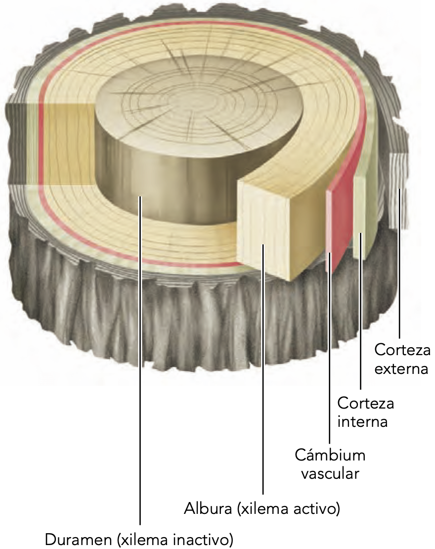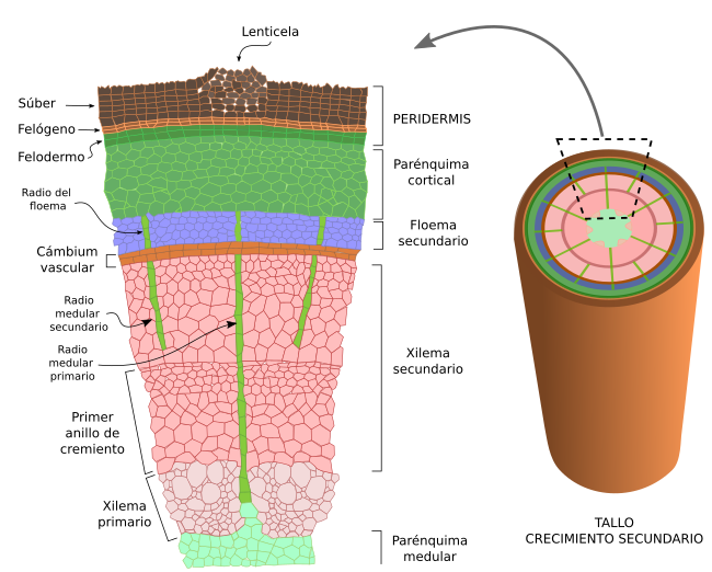 Aparte del uso de diversos tejidos vegetales como alimento, ningún tejido vegetal ha desempeñado un papel más indispensable en la supervivencia humana a lo largo de la historia que la madera, o xilema secundario. Entre otras cosas, la madera se ha utilizado para construir refugios, encender fuego para calentarse y cocinar, fabricar armas, muebles, herramientas y juguetes, fabricar pasta de papel y como medio de transporte en forma de balsas, barcos y ruedas. Evert & Eichhorn (2013).